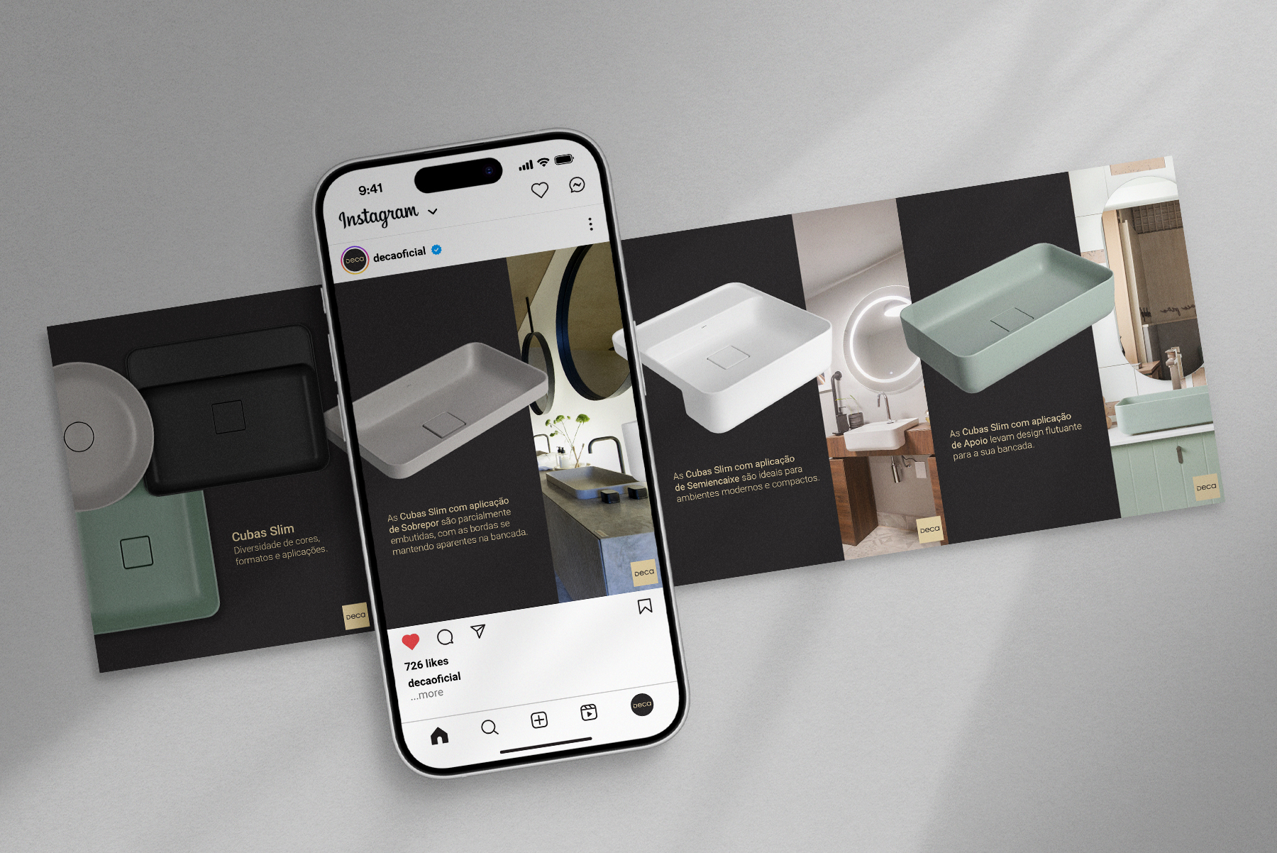 Mais do que apresentar um produto, o objetivo foi criar uma narrativa visual de alto padrão, que dialogasse com arquitetos, designers de interiores e consumidores finais exigentes. O carrossel foi construído a partir de uma lógica de leitura progressiva, explorando aplicações, diferenciais técnicos e possibilidades de uso, sempre com foco em performance visual para redes sociais.